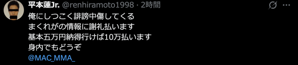 平本蓮、アンチと交戦