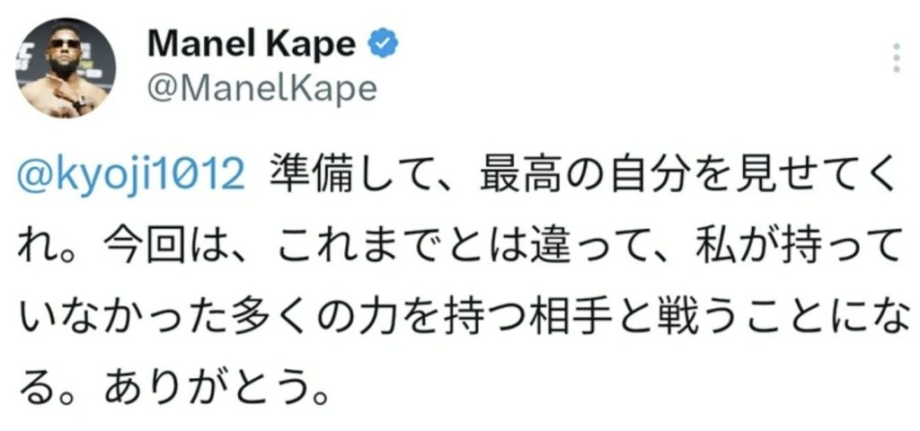 マネル・ケイプ、堀口恭司に宣戦布告