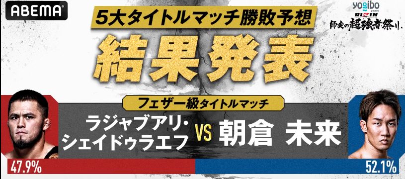 ✅シェイドゥラエフ(47.9%) vs. 朝倉未来(52.1%)