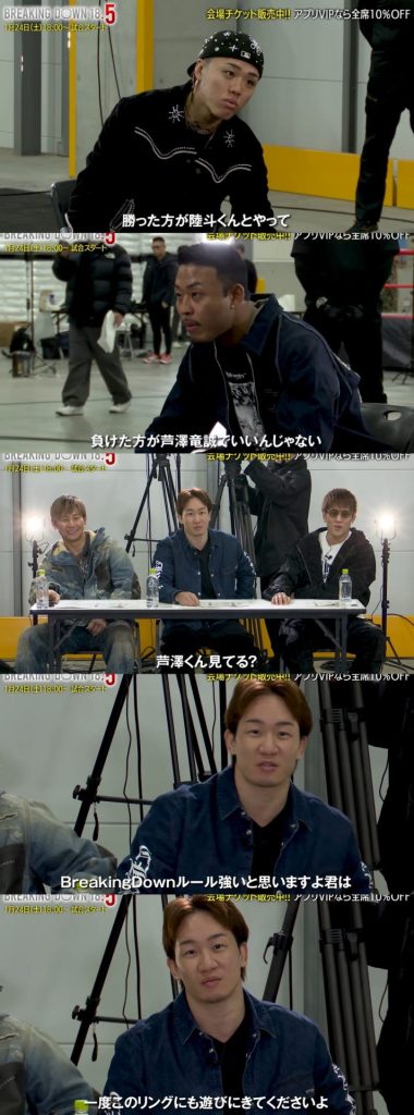 芦澤は、「ブレダンでてやるから俺が勝ったら次朝倉未来がブレダンで俺と試合するならでてやるよ」