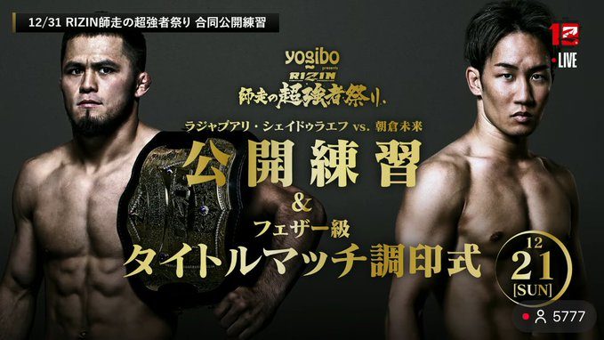 ✅参加選手#ラジャブアリシェイドゥラエフ🇰🇬#朝倉未来🇯🇵 pic.twitter.com/GfdlGmFySj