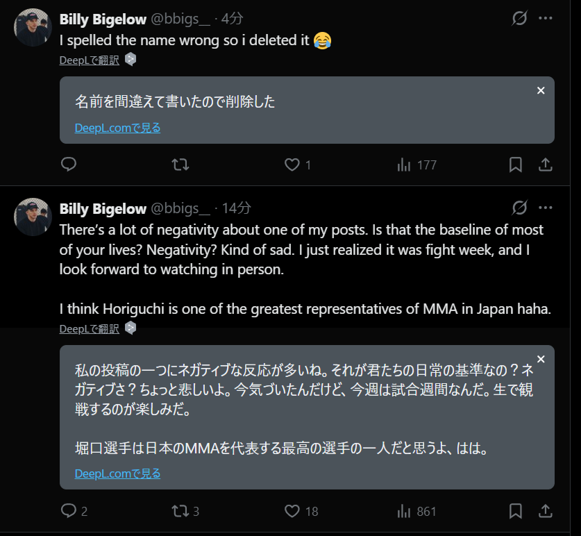 (こんなに意見が来るなんて、)ホリグチはニホンMMAを代表する偉大な選手なんだね~ハハハ😂」