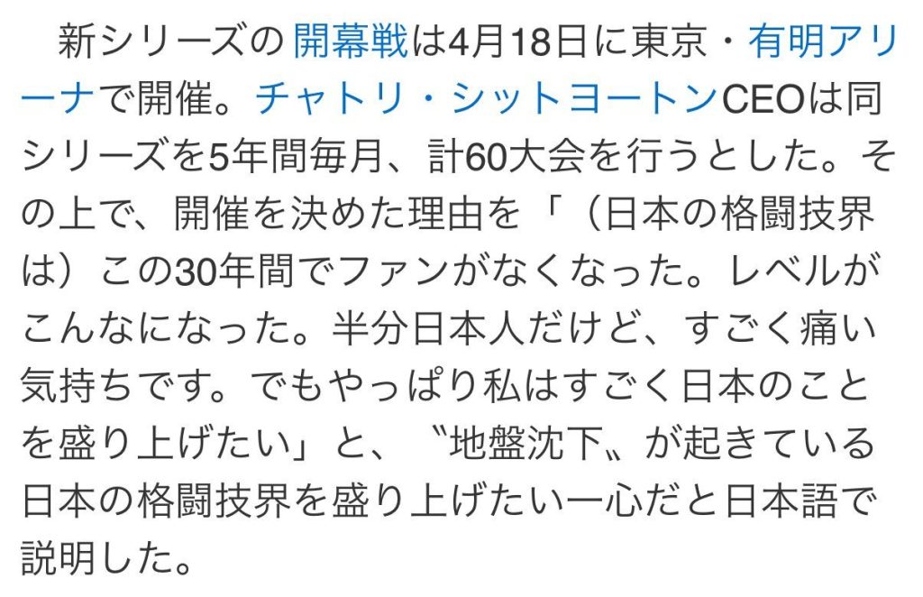 なんかチャトリの日本に対する認識が格闘技冬の時代で止まってるんだよなぁ