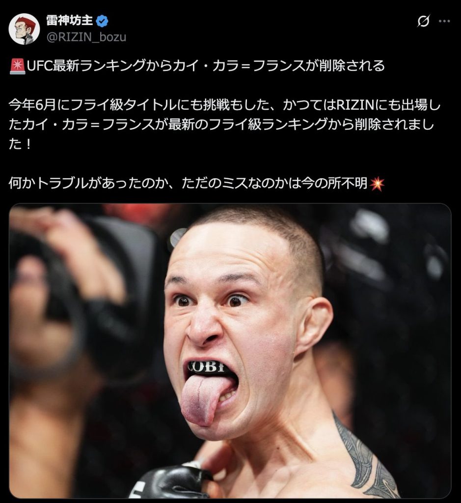 フライ級6位に位置していたカイ・カラはランキングから外れました📝