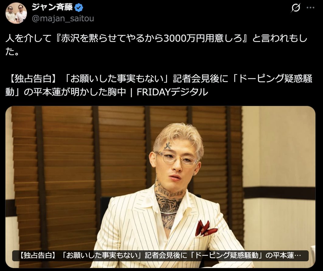 Xのインフルエンザは一般人多いから3000万言われたら速攻やめるけどジョビンは立場的に無敵だからなぁ
