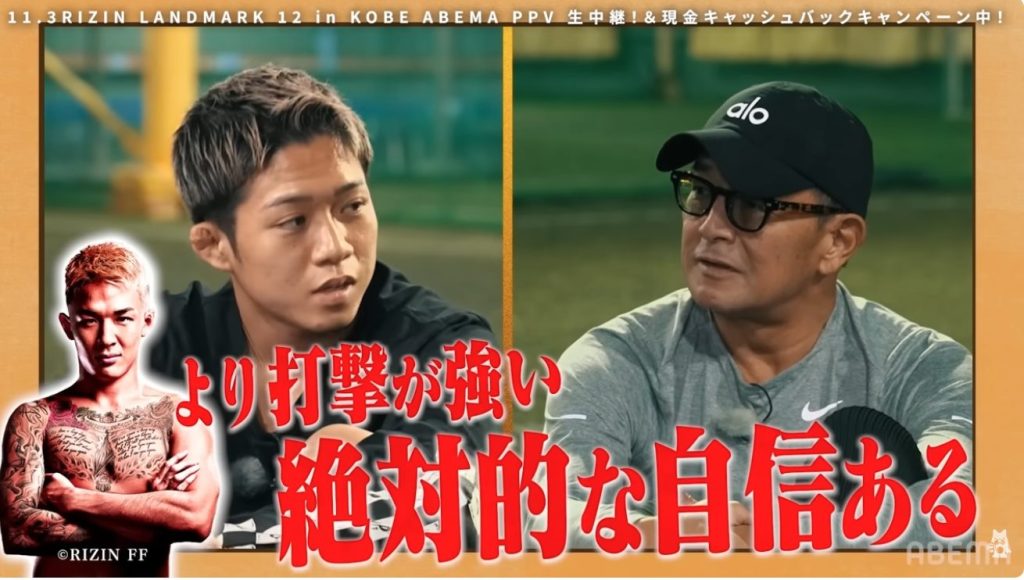理想的な試合展開として「萩原選手って一本負けは結構ありますけど、打撃でKO負けはあまりないと思うんですよね。僕は打撃では絶対的に自信があります。なので、打撃で効かせて萩原選手が倒れるシーンを見せられたら、一番盛り上がるんじゃないかなと思っています。今回は1ラウンドから飛ばしていこうと思っています」と答えた。