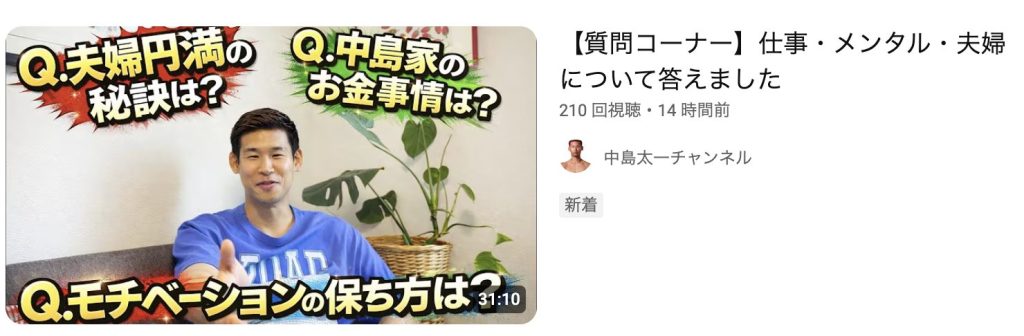 中島太一さん100再生もされてるのかすごいな