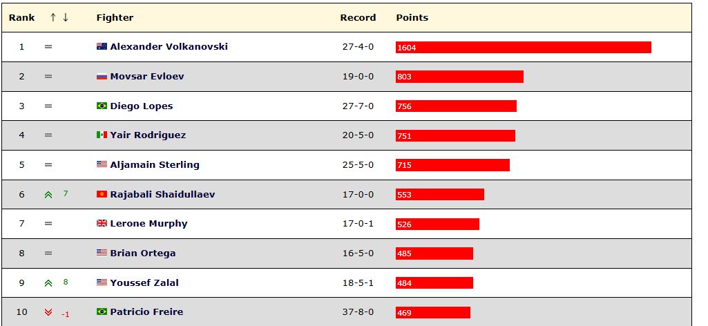 シェイちゃん非UFCなのに6位にまでなっちゃってるやん