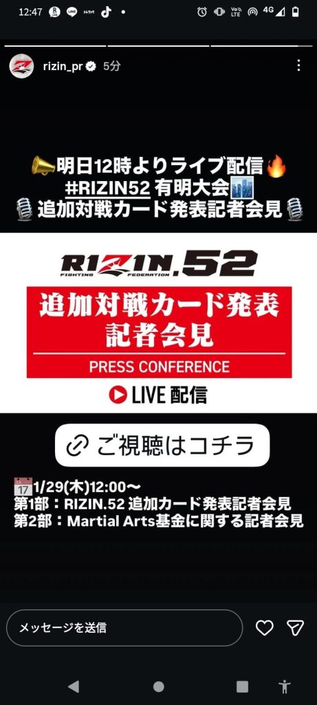 📣明日12時よりライブ配信🔥#RIZIN52 有明大会🏙️