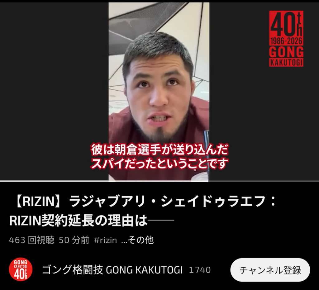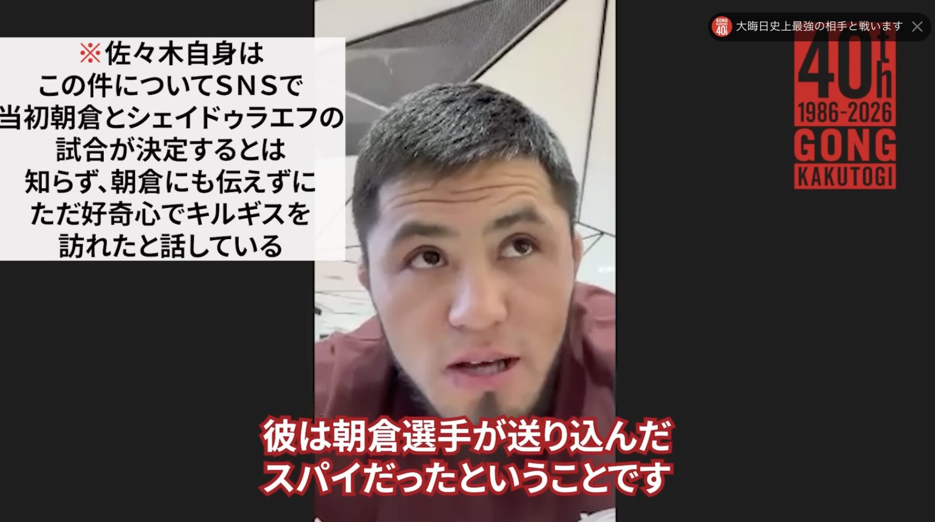 シェイドゥラエフ「佐々木大は朝倉選手が送り込んだスパイだった」