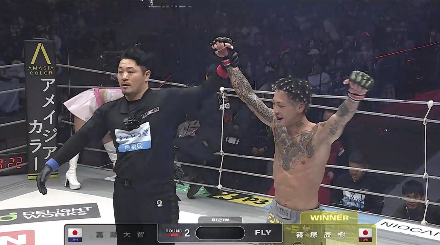 篠塚辰樹が冨澤大智に2RKO勝ち!#RIZIN師走の超強者祭り 第3試合 pic.twitter.com/aqvtUq8dUt